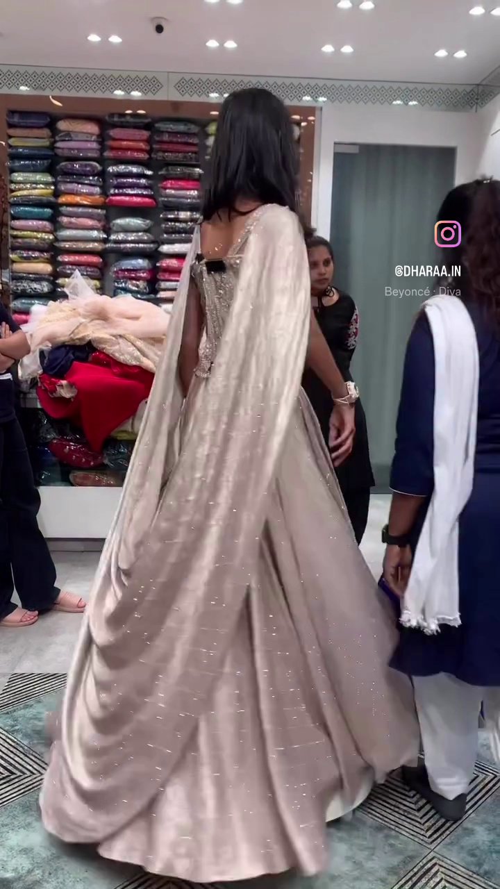 This stunning gown features an intricately embellished bodice and a flowing skirt with a matching cape, perfect for making a sophisticated statement at any special occasion. Its elegant design and delicate shimmer offer a glamorous yet refined look that customers will adore. | Video taken on: Dec 11, 2025, 7:01:04?PM UTC