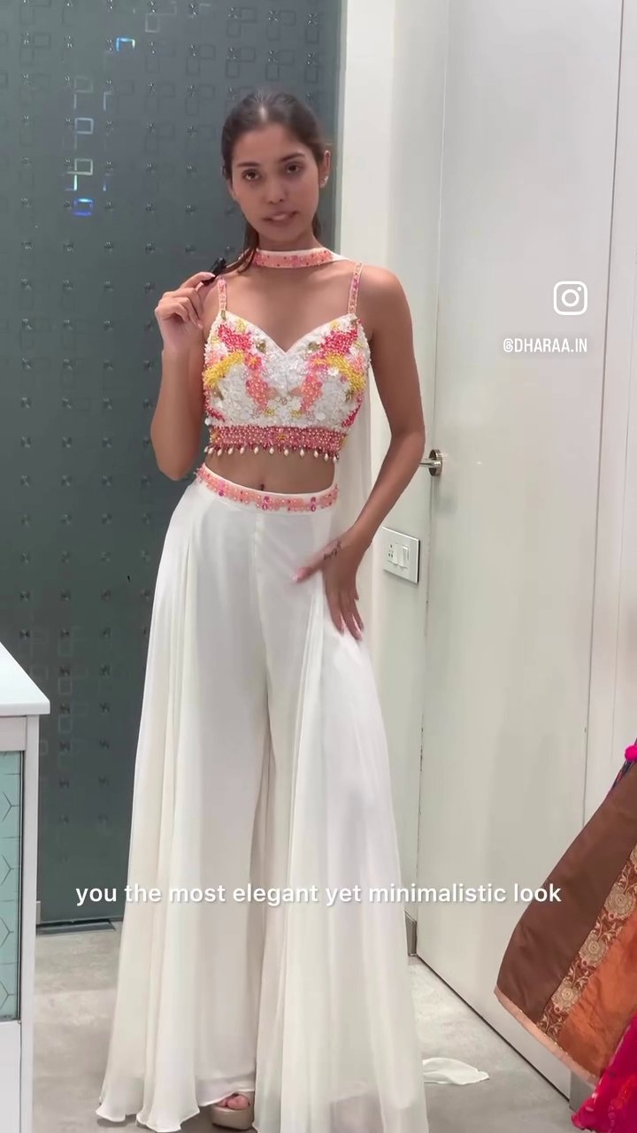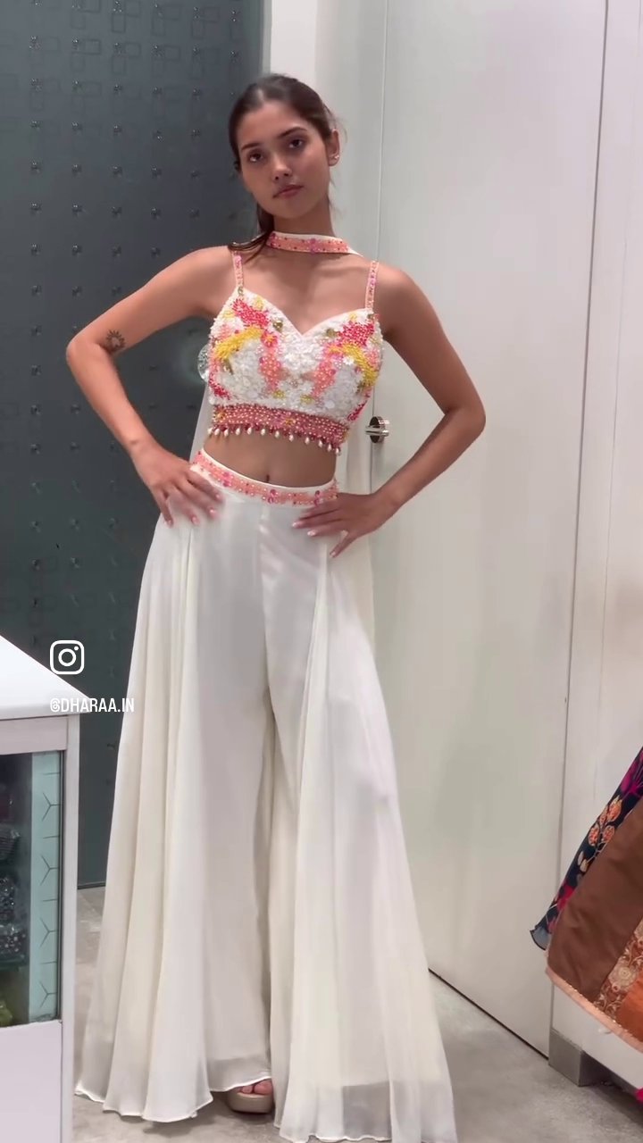 Experience elegance with this stunning two-piece set featuring a beautifully embellished crop top and flowy palazzo pants. Perfect for special occasions, this outfit combines intricate detailing with comfortable, chic design for a captivating look. | Video taken on: Dec 11, 2025, 7:01:30?PM UTC