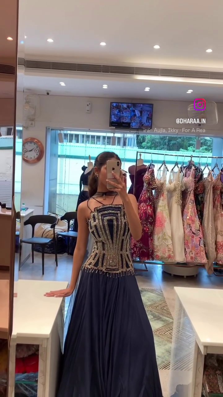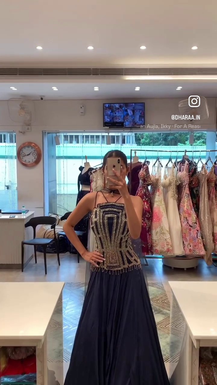 This elegant gown features a stunning, intricately embellished bodice with a flattering strappy design. The flowing dark fabric of the skirt creates a dramatic silhouette, perfect for formal events and special occasions where you want to make a statement. | Video taken on: Dec 11, 2025, 6:58:19?PM UTC