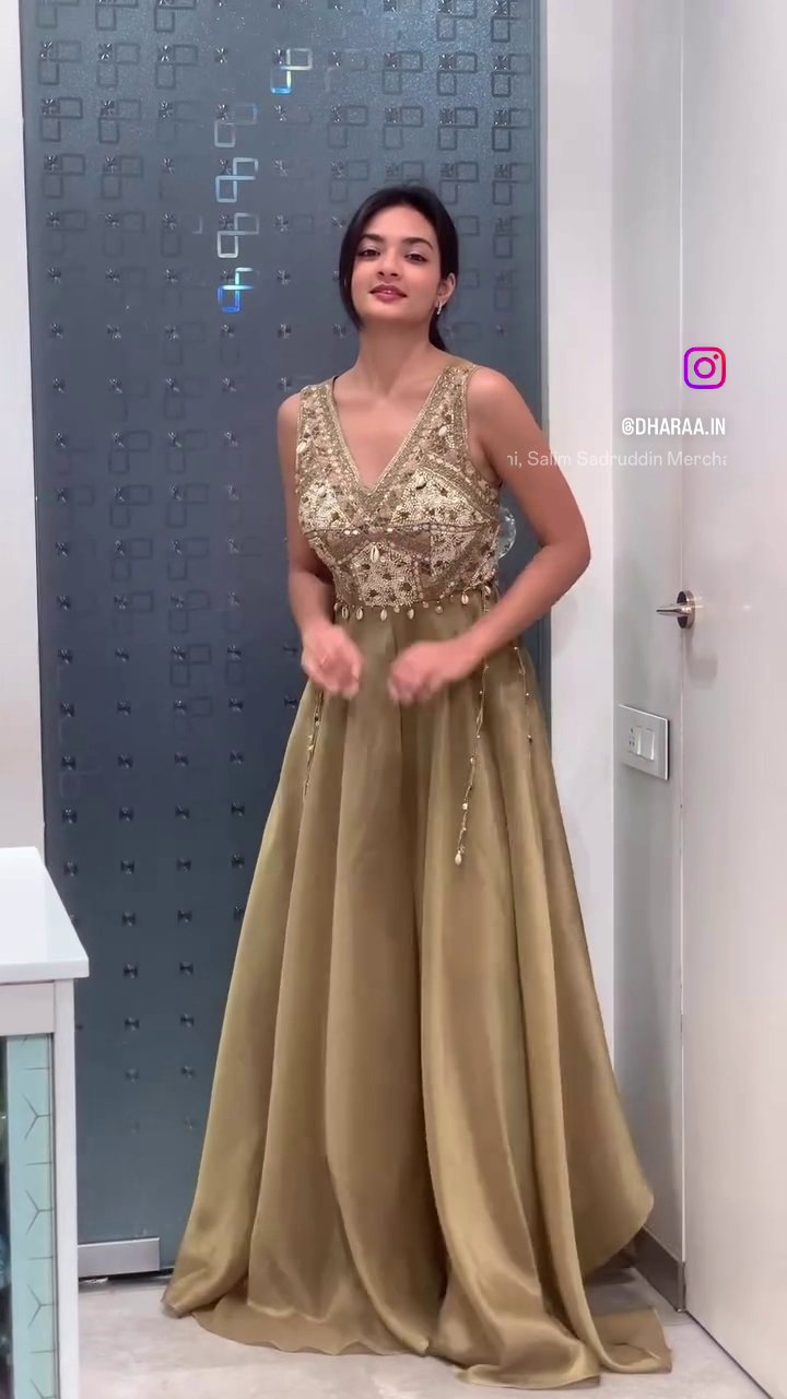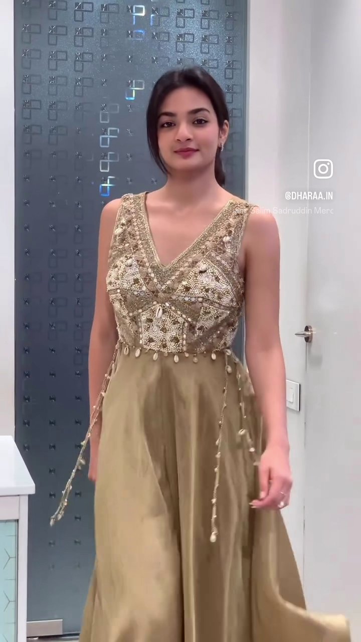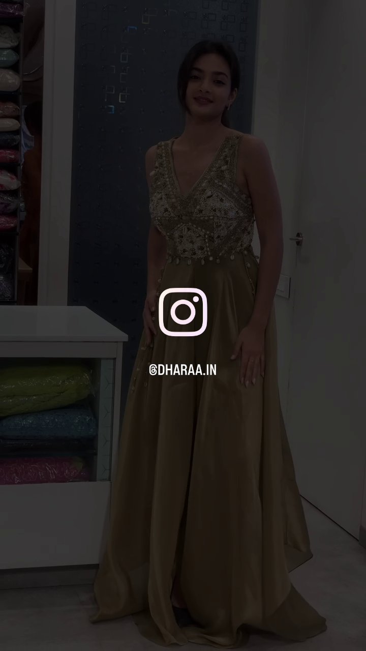 This exquisite V-neck gown features a heavily embellished bodice adorned with intricate beadwork, sequins, and unique cowrie shells, flowing into a graceful, solid-hued skirt. Perfect for making an elegant and memorable statement at festive occasions and special events. | Video taken on: Dec 11, 2025, 6:44:59?PM UTC