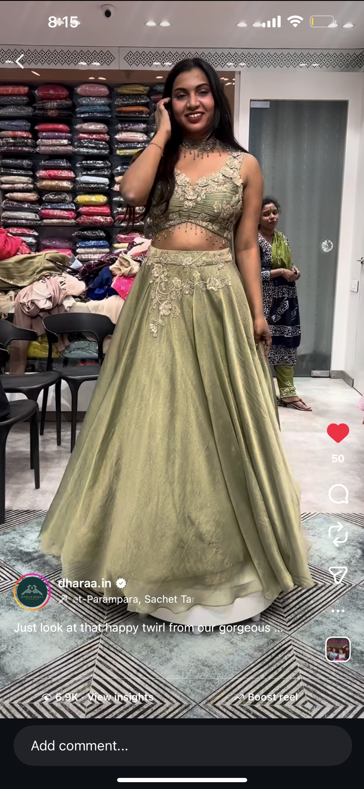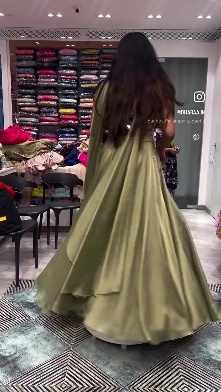 Green tissue lehenga