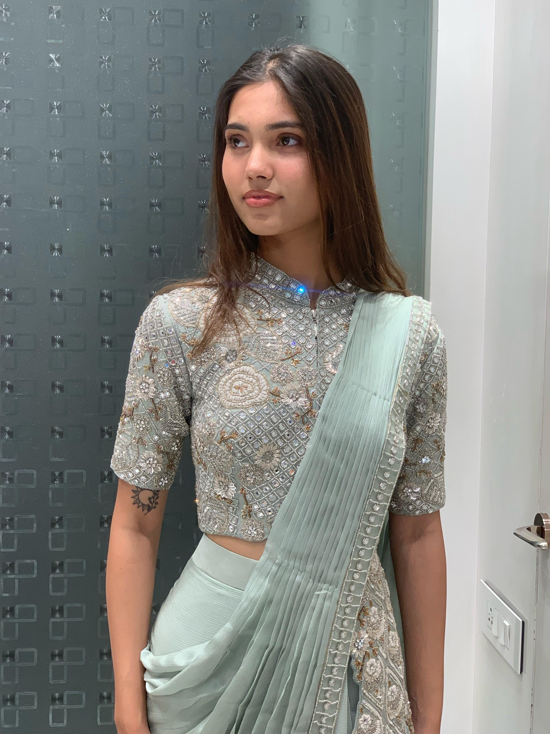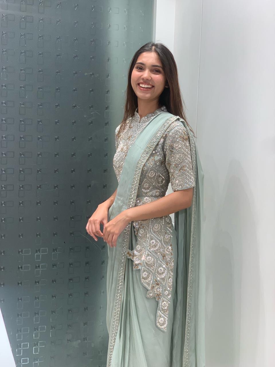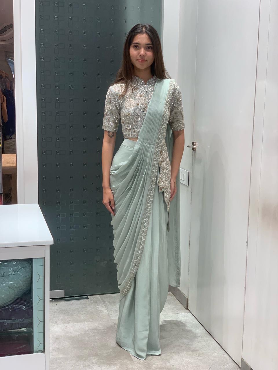 High low blouse Indo western saree