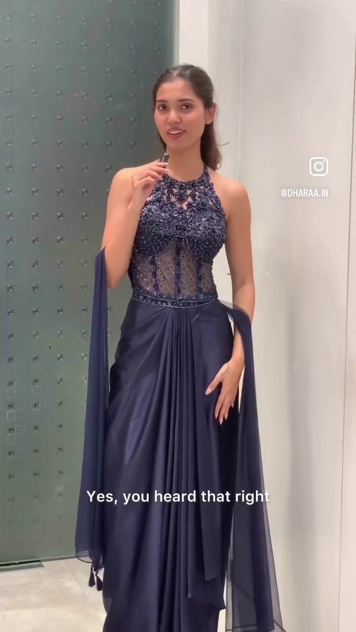 Navy Embellished Halter Indo western