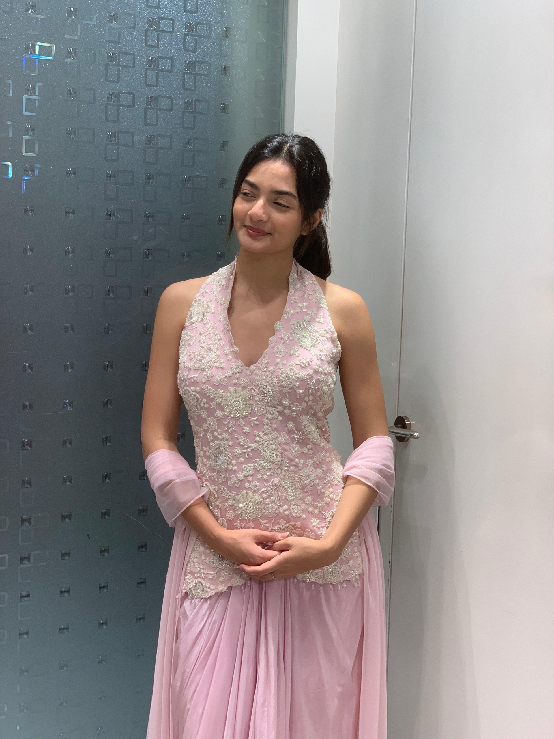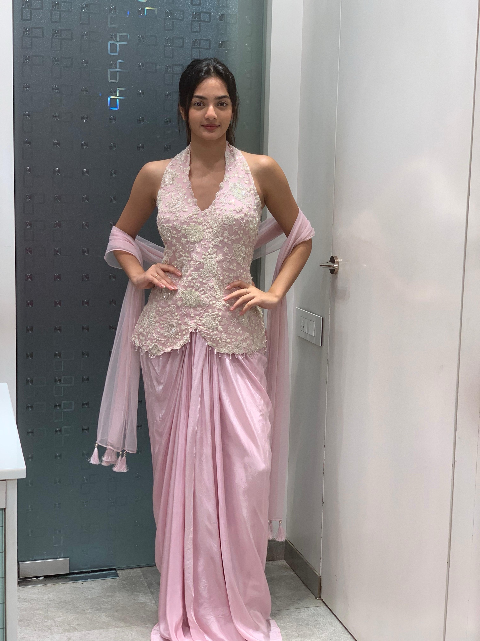 Pink drape Indo western
