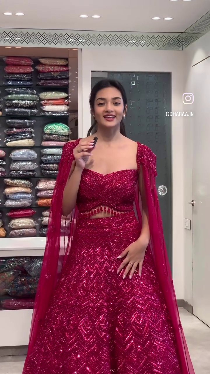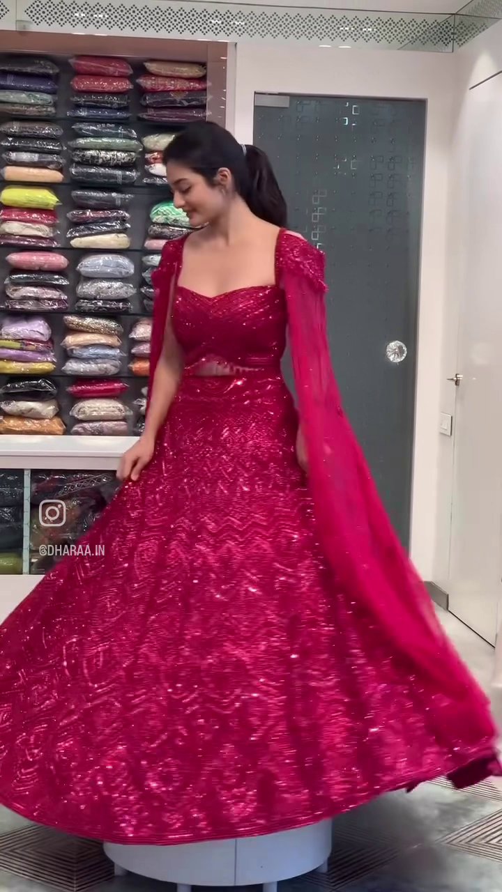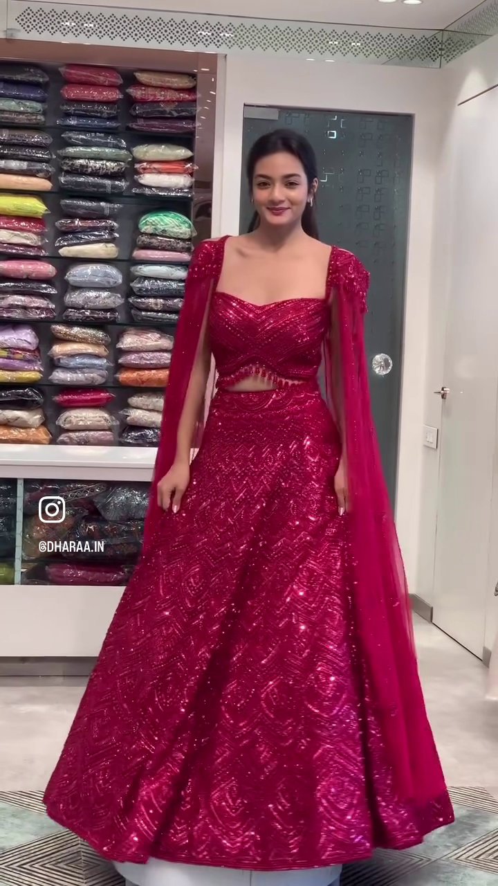 This stunning pink lehenga is adorned with intricate sequins that catch the light with every movement, creating a dazzling effect. Featuring a flattering sweetheart neckline and elegant cape sleeves, it’s the perfect outfit for any special occasion where you want to make a statement. | Video taken on: Dec 11, 2025, 6:54:01?PM UTC